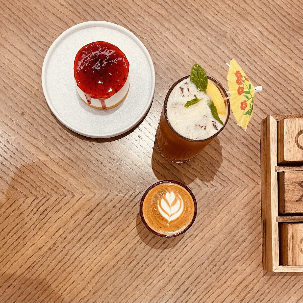 To accompany your sweets, Olmocafe serves a refreshing Lemon Ice Tea (OMR 1.500) that pairs beautifully with their rich desserts. This beverage is perfect for cooling off while still indulging in the delightful flavors of the cafe.